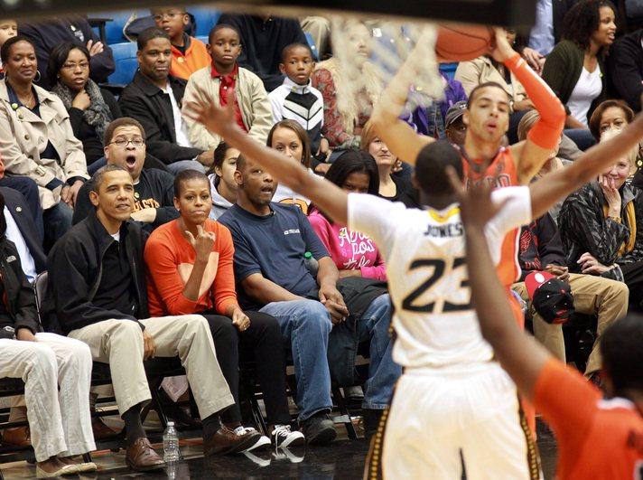 Obama çifti basketbol maçında