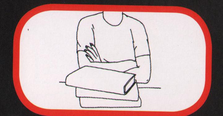 Kitap gibi bir takım engellerin arkasında ve kollarını kavuşturmuş bir halde oturur.