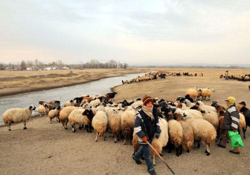 Erciş merkez ve köylerinde sabah erken saatlerde, evlerinden çıkarak koyunlarını otlatmak için meraların yolunu tutan çocuklar, son günlerde derelerin buz tutması nedeniyle hayvanlarına su bulmakta zorluk çekiyor.