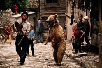 Çingenelerin tekelindeki bu meslek grubunda ekip, elinde tef ve uzunca bir sopa olan kavruk bir çingene ile, beline sardığı zincirin ucu, burnuna geçirilen halkaya takılmış bir ayıdan oluşmaktaydı. Daha çok turistik yerler ve sokak aralarında boy gösteren bu ikili ekibin gösterisi, tefi dokuz-sekizlik aksak bir ritmle çalarak şarkı söyleyen çingenenin, arada bir elindeki sopayla ayıyı dürtmesinden sonra hayvanın tempoya uygun hareketlerle zıplaması, sopaya tutunarak iki ayağının üzerinde dikilmesi ve bazen de yere yatarak bayılma numarası yapmasından oluşan ilginç bir şovdan ibaretti. En çok tutulan gösteri ise; Kocaoğlan, hamamda karılar nasıl bayılır? sorusunun ardından ayının bayılma numarası yapmasıydı. Gösteri bitince çingene kasketini çıkararak, etraflarında halka olan seyircilerden bahşiş toplardı. 1980lerde ayı oynatmak kesinlikle yasaklandı. Hayvanlar toplanarak, Uludağda oluşturulan ayı yetiştirme ve rehabilitasyon merkezine götürüldüler.