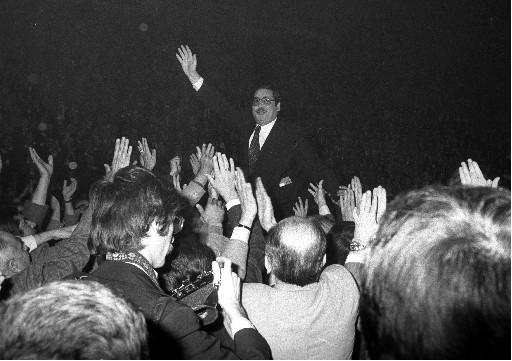 21 KASIM 1978 - AP 9. BÜYÜK KONGRESİNE KATILAN AYDIN MENDERES PARTİLİLERİ SELAMLIYOR