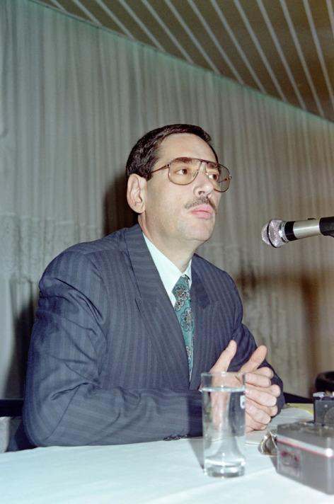 ESKİ BAŞBAKANLARDAN ADNAN MENDERES'İN OGLU AYDIN MENDERES, BABASININ NAAŞININ İMRALI'DAN NAKLİ KONUSUNDA BASIN TOPLANTISI YAPTI - 14 EYLÜL 1990