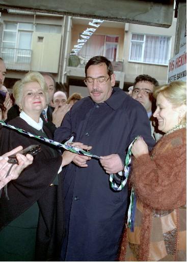 27 KASIM 1993 BÜYÜK DEĞİŞİM PARTİSİ GENEL BAŞKANI AYDIN MENDERES PARTİSİNİN MALTEPE İLÇE BAŞKANLIĞI AÇILIŞ TÖRENİNDE EŞİ UMRAN MENDERES İLE BİRLİKTE...