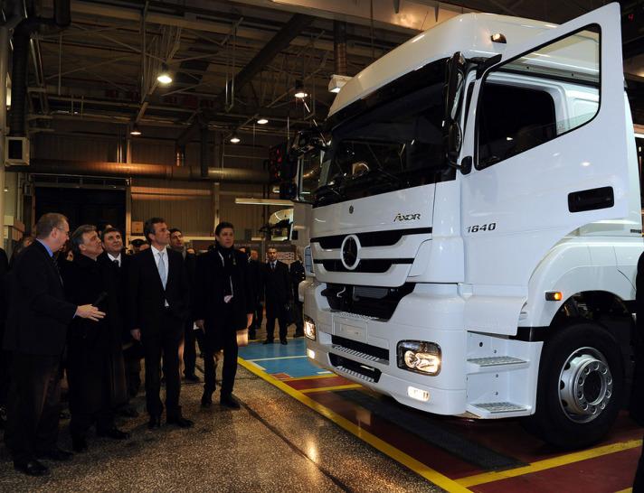 Cumhurbaşkanı Gül, kamyonlardan birinin şoför koltuğuna oturdu. İşçilerle bir süre sohbet eden Cumhurbaşkanı Güle fabrikada eğitim gören öğrenciler tarafından bir tablo hediye edildi.