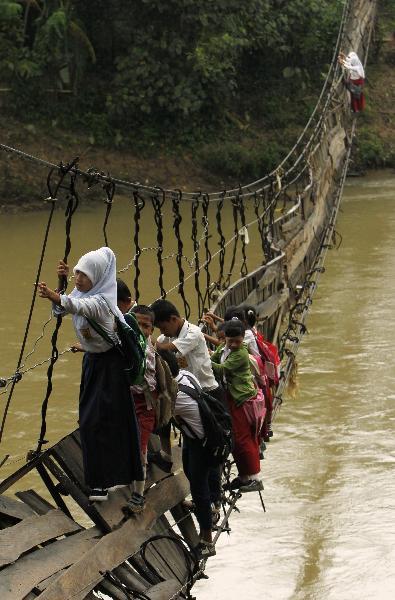 Öğrencilerin en ufak hatalarında ya da eğreti tahta parçalarından birinin kopması halinde nehre düşerek boğulmalarının kaçınılmaz olduğu olay, görenlerin yüreklerini ağızlarına getiriyor.
