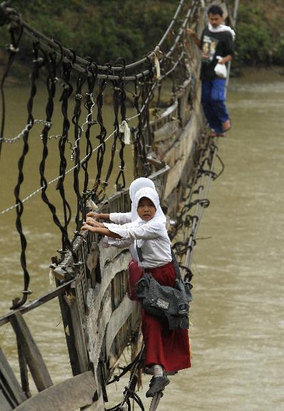 Indiana Jones filmlerini andıran görüntülerde bazıları beş yaşında olan öğrenciler okullarına gidebilmek için Ciberangbü nehri üzerinde büyük tehlikeleri göze alıyor.