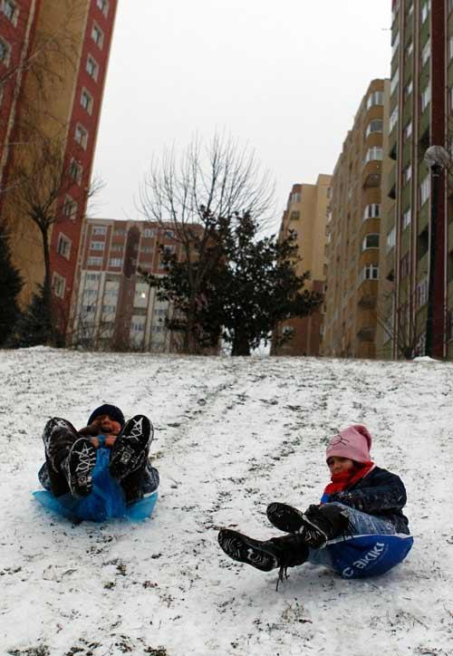 Soğuğa aldırış etmeyen minik bedenler, 'üşümek' nedir bilmez.