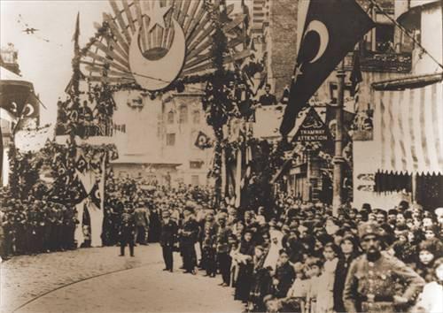 6 EKİM 1923'TE GRAND RUE DE PERA C.K. Streit fotoğrafın arkasına şöyle yazmış: Türk birliklerinin İstanbul'a girmesinin şerefine Türk Zafer Takı
