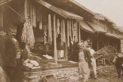 TİPİK ANADOLU DÜKKANLARI C. K. Streit'in kaleminden: Madan'da [Maden] öğle yemeği için mola verdik ve bir Rum restoranında yemek yedik. Bir sokağa çoğu Ermeni olan demirciler ve bakırcılar dizilmişti, arada Türk zanatkarlarının dükkanları da bulunmaktaydı. Türkiye'deki mağaza ve dükkanlar üç aşağı beş yukarı birbirine benziyor - bir taraf tamemen açık ve sokağa bakan tek küçük bir oda.