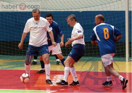 Başbakan Recep Tayyip Erdoğan (solda), Avusturya’nın Başkenti Viyana’da Avrupa Birliği Üyeleri ile AB’ye aday ülkelerin liderlerinin katıldığı futbol karşılaşmasında forma giydi. Erdoğan'a Türkiye'den Fatih Terim eşlik etti. (11/05/2006)