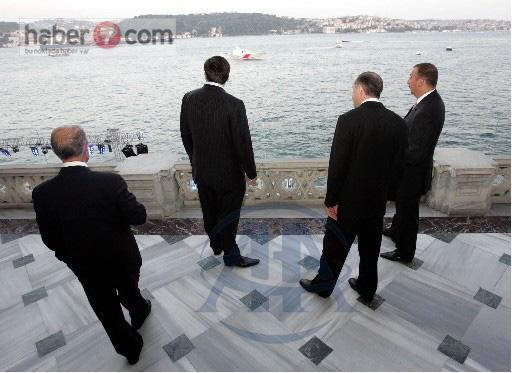 Cumhurbaşkanı Ahmet Necdet Sezer, Bakü Ceyhan Petrol Boru Hattı’nın açılış töreni öncesi Çırağan Sarayı’nda gala yemeği verdi. Yemek öncesi (soldan sağa) Cumhurbaşkanı Ahmet Necdet Sezer, Gürcistan Devlet Başkanı Mıkheıl Saakashvılı, Azerbaycan Devlet Başkanı İlhami Alıyev ve Başbakan Recep Tayyip Erdoğan Çırağan Sarayı balkonundan boğazı izlediler.