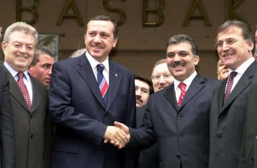 Başbakan Recep Tayyip Erdoğan'ı devir teslim törenine katılmak üzere geldiği Başbakanlık Merkez Binası'da 58. Hükümet'in Başbakanı Abdullah Gül kapıda karşıladı. Yanlarında Devlet Bakanı ve Başbakan Yardımcısı Mehmet Ali Şahin vardı. (03/15/2003)