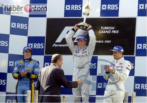 İstanbul Grand Prix’si 'İstanbul park' pistinde yapıldı. Basbakan Recep Tayyip Erdoğan İstanbul Grand Prix’sini kazanan Mclaren Mercedes pilotu Kımı Raıkkonen'e kupasını verdi. (21/08/2005)