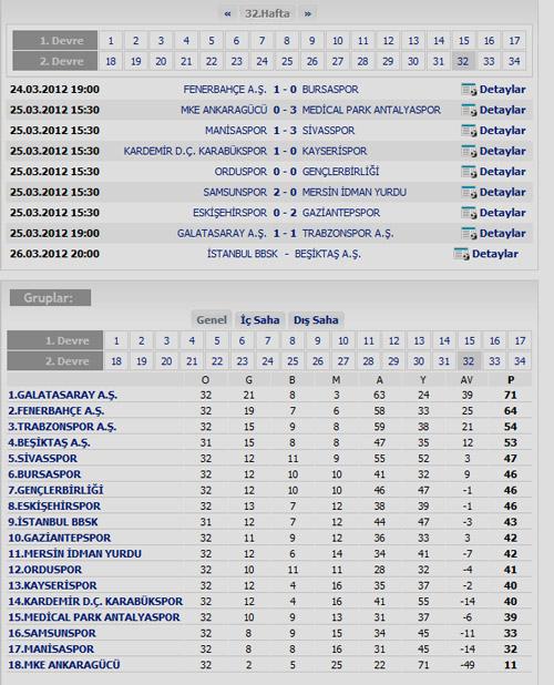 32. HAFTADAKİ SON PUAN DURUMU