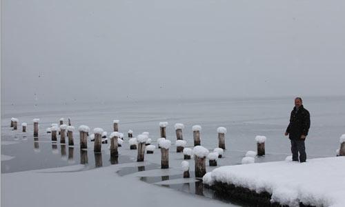 Van Gölü üzerinde aşırı yağış nedeniyle oluşan kar katmanları görenleri hayrete düşürdü.