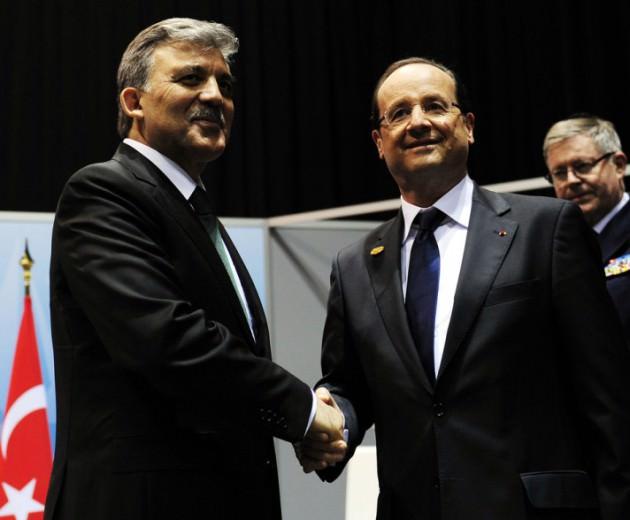 AMERIKA BIRLESIK DEVLETLERI'NIN CHICAGO KENTINDE GERCEKLESTIRILEN NATO 2012 DEVLET VE HUKUMET BASKANLARI ZIRVESI'NE KATILAN CUMHURBASKANI ABDULLAH GUL, FRANSA CUMHURBASKANI FRANCOIS HOLLANDE ILE GORUSTU. (ANADOLU AJANSI - BURAK AKBULUT)
