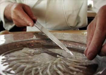 FUGU BALIĞI: Kâğıt kadar ince dilimler halinde satılan fugu balığında tetrodoksin adlı, oldukça etkili bir zehir bulunuyor. Bu balığı pişiren şefler özel eğitim alıyor.