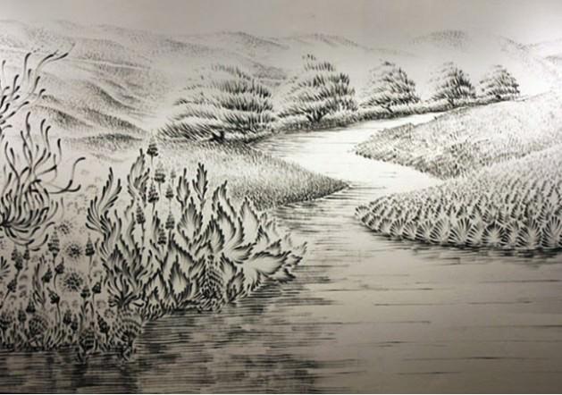 Bazen 2 elini birden ve hatta bazen kollarını dahi boyamada kullanan Judith, eserlerinde insan vücudun doğal simetrisinden yararlandığını söylüyor.