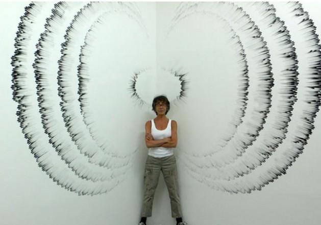Fırça değil, parmaklarını kullanıyor