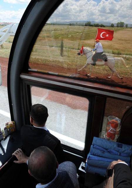 Erdoğan'ı, elde cirit at sırtında karşıladı