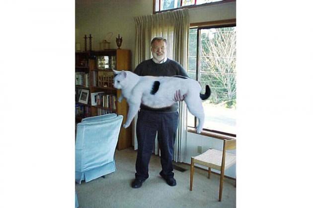 Dev Kedi Snowball 2000 yılından sonra e-posta'larda dolaşmaya başlayan fotoğrafta Roger Degagne isimli bir vatandaş, bu devasa kedisiyle poz vermiş. E-posta'da yer alan iddiaya göre Snowball'un bu hale gelmesinin nedeni santraldeki zehirli bir sıvı.