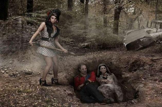 El Mostrador gazetesi için hazırlanan afişlerin birinde geçtiğimiz yıl hayata veda eden Amy Wimehouse Prens William ile eşi Kate Middleton’ı canlı canlı gömerken görülüyor. Bir diğer afişte ise geçtiğimiz yıl hayata veda eden Libya'nın devrik lideri Muammer Kaddafi Mısır'ın eski lideri Hüsnü Mübarek'i gömüyor.
