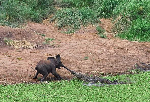Ana fil ilk hamlede kendisini siper ederek yavruyu kurtardı ama kendi hortumunu kaptırdı. Anne fili bu kez yavrusu hayata döndürdü.