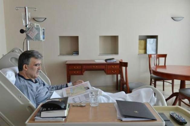 Cumhurbaşkanı Abdullah Gül, tedavi gördüğü Hacettepe Üniversitesi hastanesindeki hasta yatağından fotoğraflarını Twitter'dan paylaştı. İşte fotoğrafta dikkat çeken önemli detaylar....