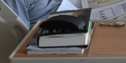 Hasta yatağının yanındaki portatif masanın üzerinde yer alan kitap, eski ABD Başkanı Bush'un hayatını anlatan Decision Points.