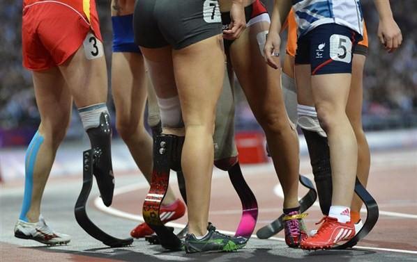 Londra Paralimpik Oyunları’nda Kadınlar 100 m T44 kategorisinde yarışan atletler, koşu bitiminde kucaklaşıyorlar. Büyük Britanya
