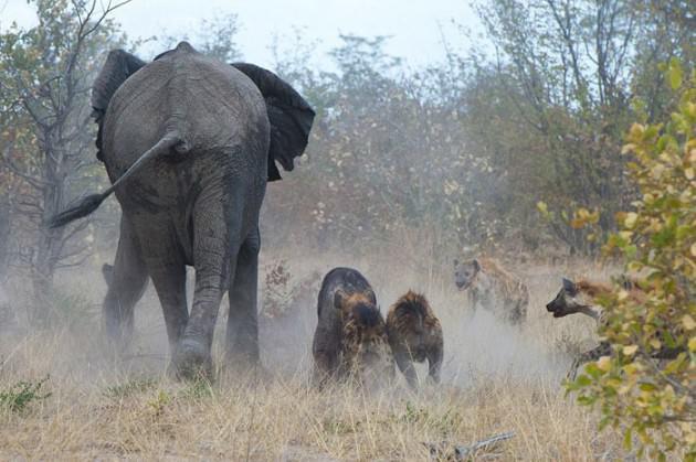 Botswana'da çekilen bu fotoğraflar, tam 18 sırtlanın saldırısına uğrayan yavrusunu kurtarmaya çalışan anne filin dramatik mücadelesini yansıtıyor.Anne fil, yavrusunun etrafını sarıp üzerine atılmaya çalışan sırtlanlara duraksamadan saldırdı.Sırtlanları hortumuyla yakalayıp fırlatan anne, sonunda yavrusunu kurtardı.Tüm bu mücadele sırasında yavru fil kuyruğunu kaybetse de, annesinin sayesinde hayatta kalabildi.