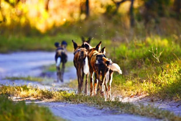 Zimbabve: Bir Köpeğin Yaşamı'ndan bu karede yol boyunca kameradan uzaklaşıp giden bir köpek sürüsü.