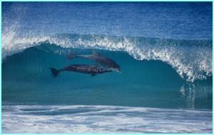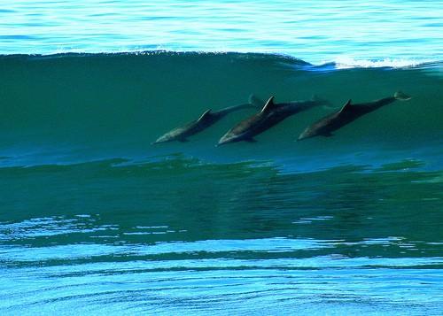 Sörfçülerin arasına giren yunuslar