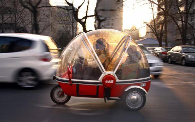 Kapsül şeklindeki bu tekerlekli araç Çin’de kullanılıyor.