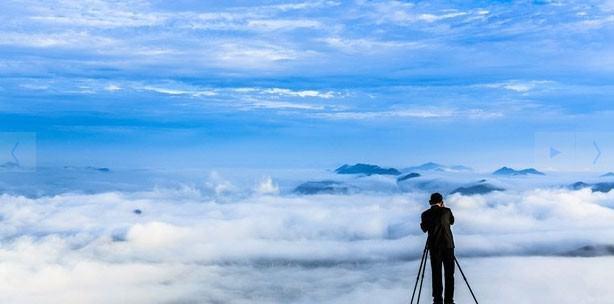 Fotoğrafçı Mt. Yangbaeksan'ın denizin üzerini kapatan bulutların fotoğrafını çekerken - Sungjin Kim