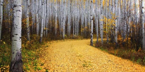 Colorado'da sonbaharla birlikte yola dökülen kavak ağacı yaprakları - Chih-Hung Kao