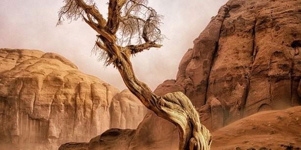 Arizona'da bir kum fırtınasının ardından tek kalan yaşlı ve eski bir ardıç ağacı - Dave Drost