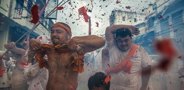 Çin'de Phuket Vejeteryen Festivali'nde kutsal ritüellerini gerçekleştiren ve 10 gün süren bir diyet yapan yerel halk - Peerakit Jirachetthakun