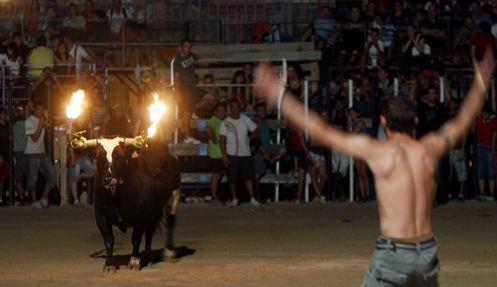 Boğaları canlı canlı yakıp eğleniyorlar
