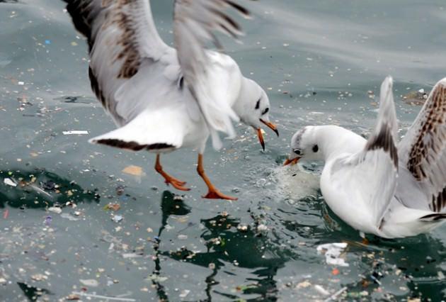 Balıkçı tekneleri ve gemilerden boşaltılan atıklar arasından bulabildikleri ekmekleri kapabilmek için birbiriyle yarıştı.
