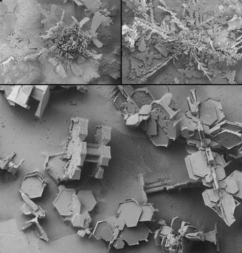 ABD’nin Batı Virgini eyaletindeki Bearden Dağı’nda toplanan farklı kar taneleri. Sol üstteki -10, sağ üstteki -20 ve alttaki -30 derecede görüntülendi.