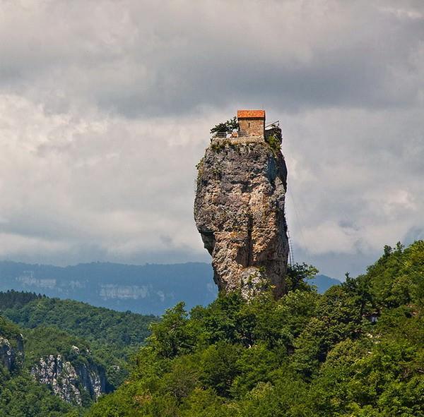 Gürcistan'ın Katskhi köyünde bulunan doğal bir kireçtaşı kayalığı yaklaşık 40 metre yükseklikte ve küçük bir nehir vadisinde yer alıyor. Kayalığın üzerinde küçük bir klise bulunuyor.