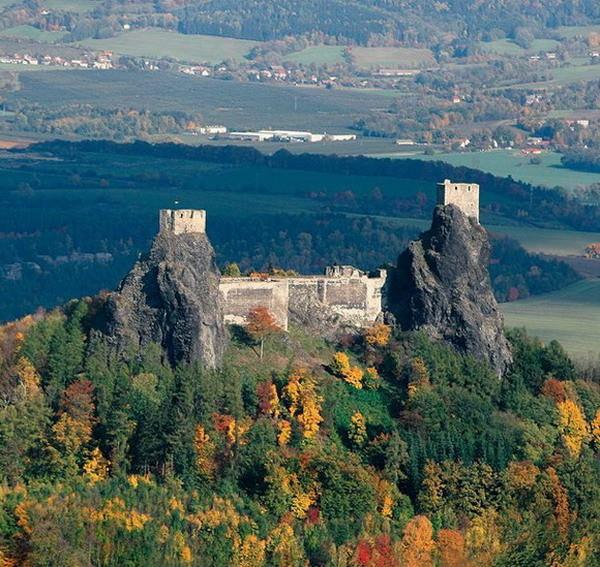 Üzerinde kale inşa edilen Trosky kalyalığı Çek Cumhuriyet'inde bulunuyor. Kale 14. yüzyılında, baba oğul adı verilen 47 ve 57 metre yüksekliği olan 2 kayalık üzerinde inşa edilmiş.