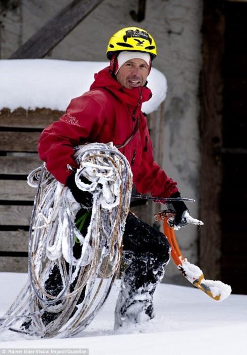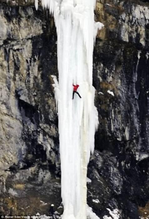 Maceraperest dağcı Walter Hungerbühler, İsviçre'nin Wolfenschiessen bölgesindeki donmuş şelaleye tırmandı.