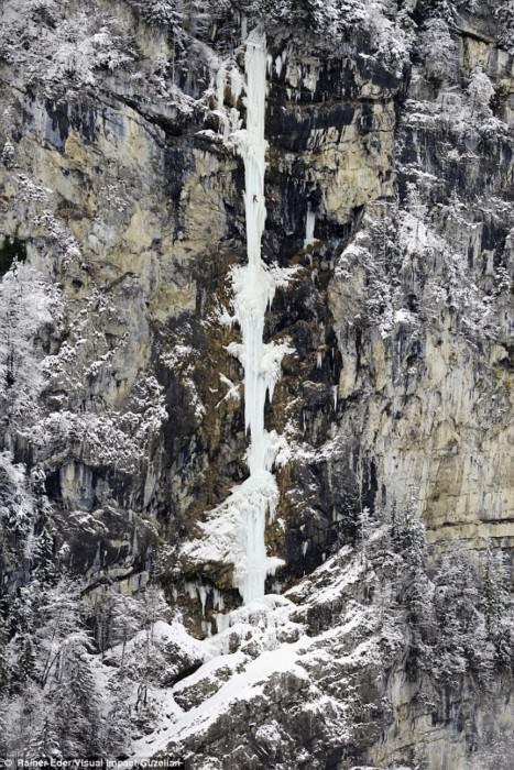 Donmuş şelaleye böyle tırmandı!