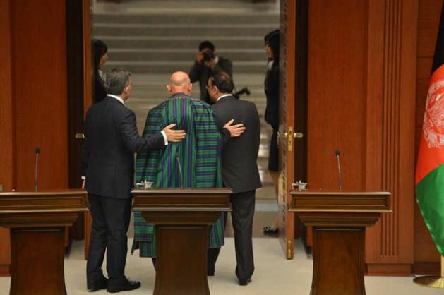 'Türkiye-Afganistan-Pakistan Üçlü Zirve Süreci 7. Toplantısı sonrasında misafir devlet başkanları ile basın toplantısından ayrılırken.'