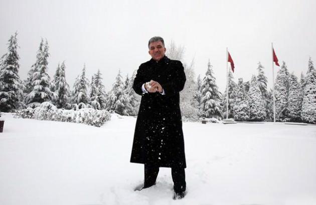 -'2012 Ocak ayında Ankara'daki yoğun kar yağışı sonrası beyaza bürünen Çankaya Köşkü'nde kartopu oynarken.'