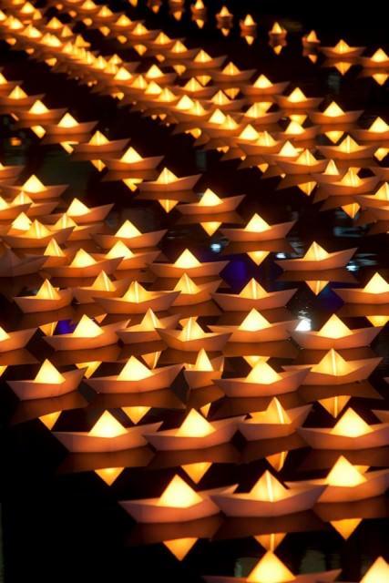 Kağıt kayıklarla ışık gösterisi