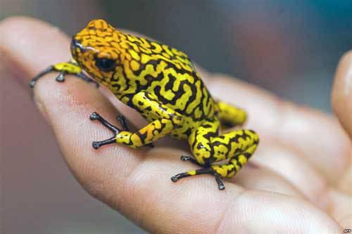 Kolombiya - Medellin'deki hayvanat bahçesinde zehirli bir kurbağa. Gelişigüzel ve kaçak satışlar yüzünden türü tehlikeye giren canlılardan biri.