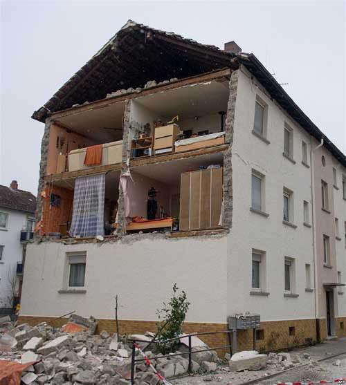 Almanya - Frankenthal'daki bu evin bir cephesi, ortada görünen herhangi bir sebep yokken, birdenbire yıkıldı. Neyse ki vatandaşlar yaralanmadı.